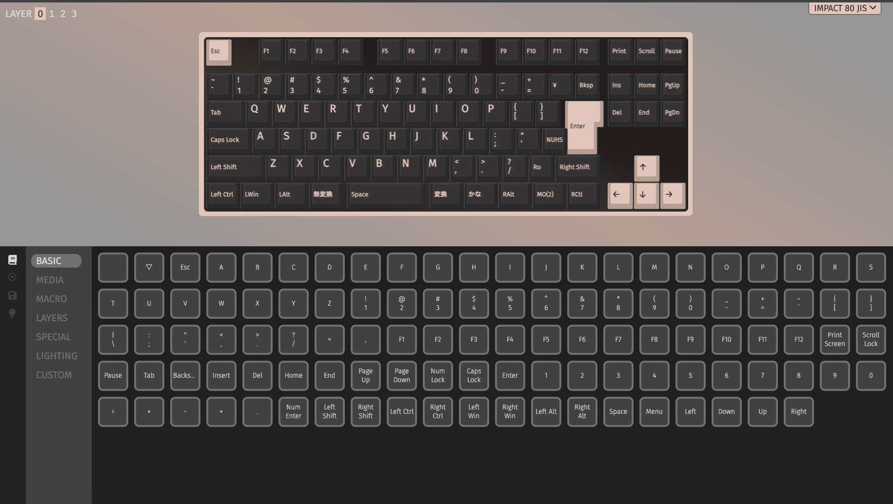 JIS配列もラインアップされ、impact80シリーズは低価格帯キーボードの有力な選択肢になりえる…というか以前も書きましたが、これでゴールしちゃっても良いくらい平均点の高いメカニカルキーボードです。